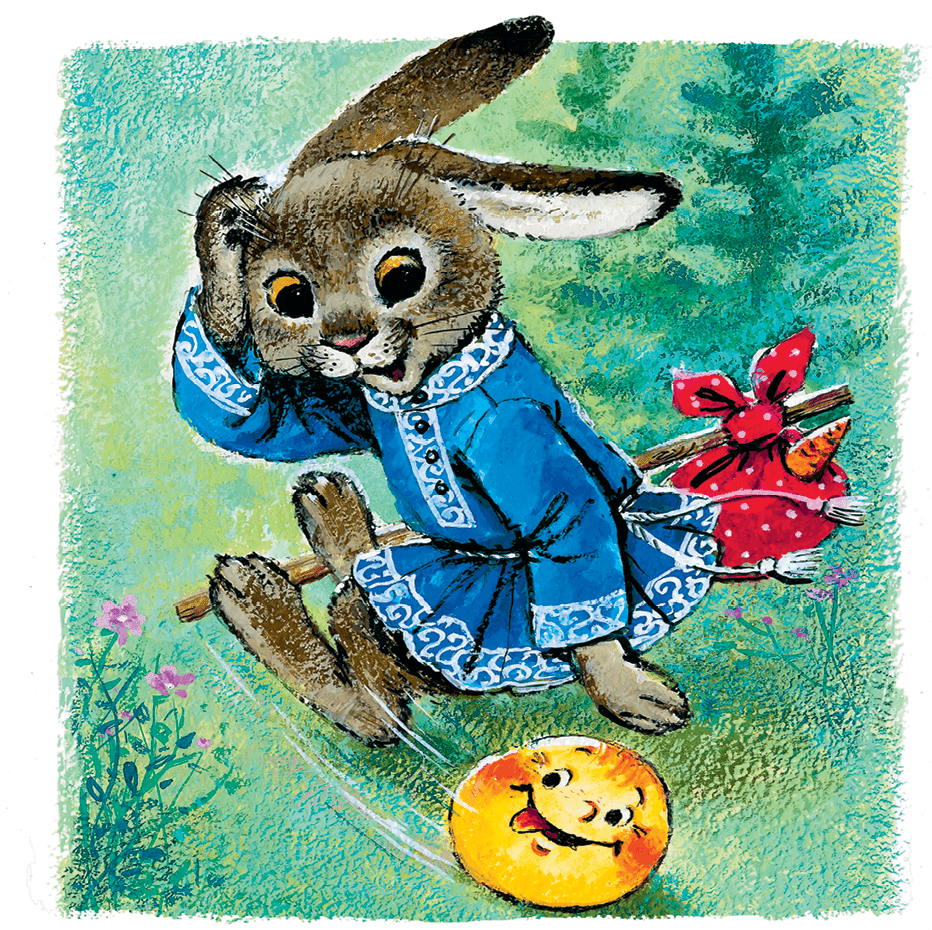Я от дедушки ушёл,Я от бабушки ушёл,От тебя, зайца,Не хитро уйти.Катится колобок по тропинке в лесу, а навстречу ему серый волк: