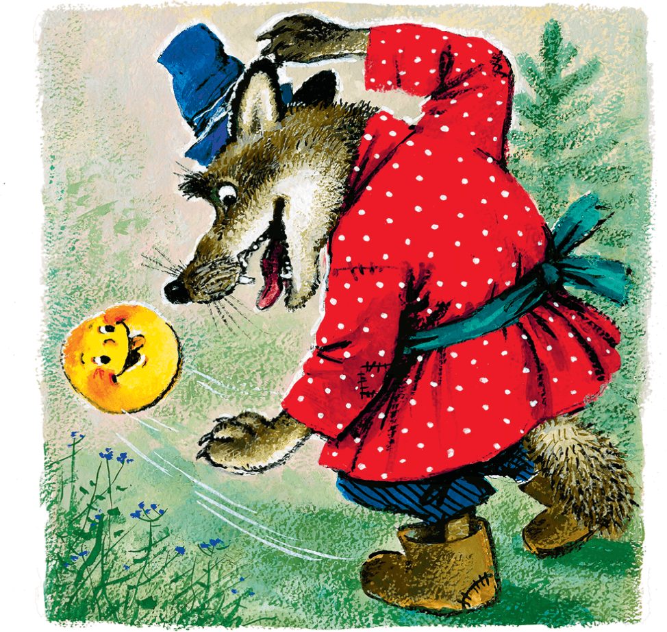 – Я колобок, колобок!По амбару метён,По сусечкам скребён,На сметане мешён,В печку сажён,На окошке стужён.Покатился колобок дальше – только его волк и видел.