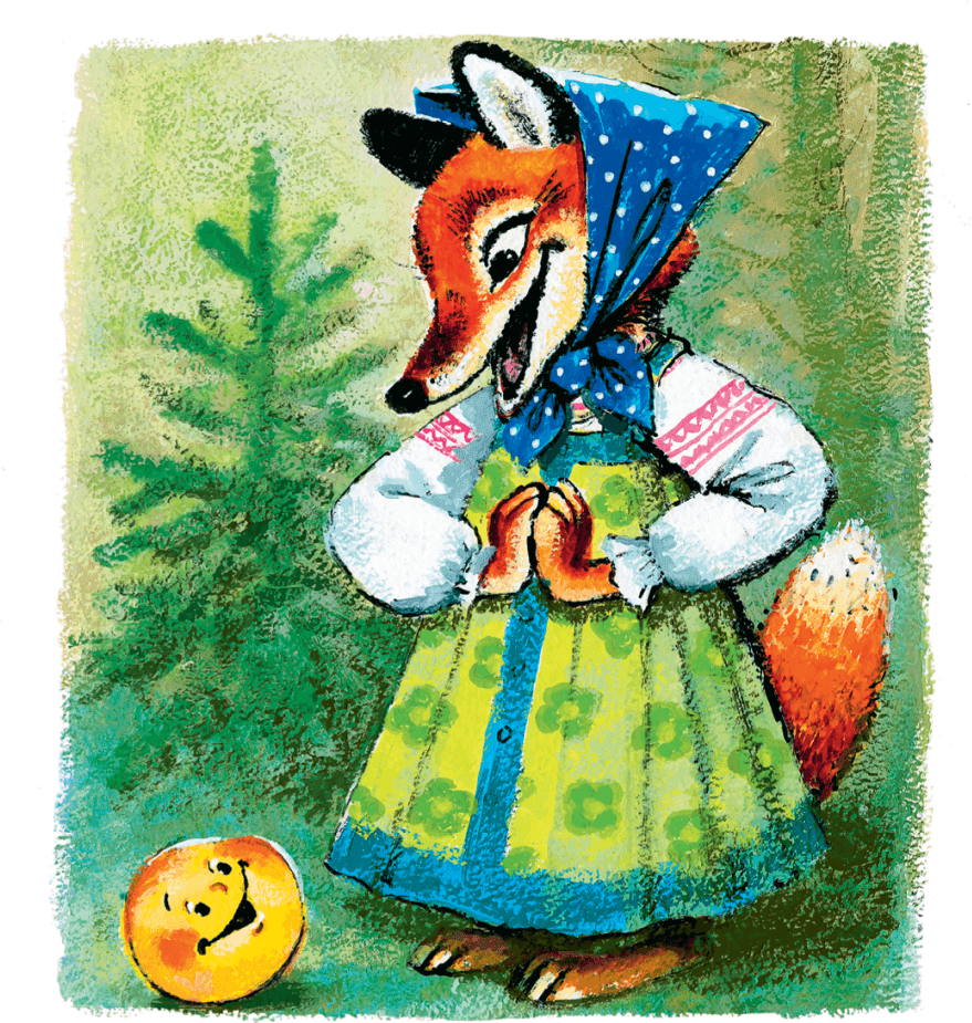 Колобок рад, что его похвалили, и запел свою песенку, а лиса слушает да всё ближе подкрадывается.