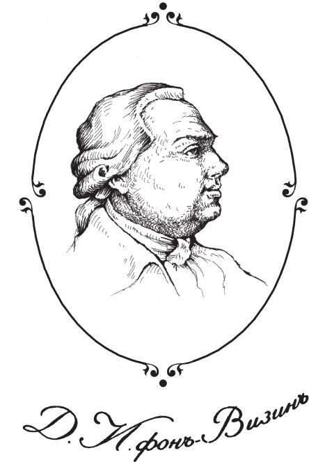Фонвизины по мужской линии происходили из древнего немецкого рыцарского рода. В Ливонской войне, во времена Иоанна Грозного, его предок Петр вместе со своими сыновьями был пленен русскими войсками и, по-видимому, попросился потом на русскую службу. Они получили земли и начали верой и правдой служить своей новой родине. Один из предков драматурга (кстати, тоже носящий имя Денис!) показал себя мужественным и неподкупным патриотом во времена Смуты. В царствование Алексея Михайловича Фонвизины приняли православную веру (до этого были «в немецкой вере», то есть лютеране-протестанты), а к восемнадцатому столетию окончательно обрусели. Но фамилию писали по-старинному, по-немецки – «фон-Визин», и еще сам Денис Иванович подписывал свое имя именно так. (В ХIХ веке такое написание некоторых уже будет коробить. Хорошо, например, известно, как Пушкин в письме отчитывал своего брата Льва. «Что ты из Фонвизина делаешь «нехриста», – ворчал великий поэт, – он – «из перерусских русской».)