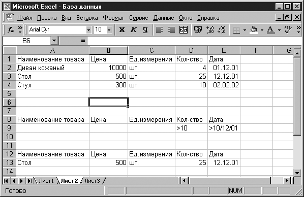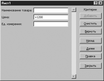 4. Определите критерии поиска, например: количество проданных товаров – больше 10, даты продаж – после 10.12.01.