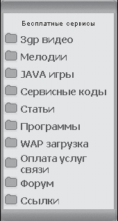 Сразу после загрузки страницы в средней части экрана вы увидите меню (рис. 4.9).