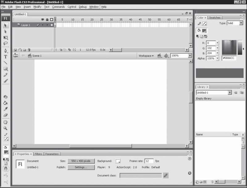 1. Создание нового документа в программе Macromedia Flash.