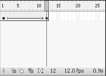 Сейчас нужно воспользоваться автоматическим заполнением кадров для построения гладкой анимации. Для этого щелкните правой кнопкой мыши на одном из кадров, расположенных между ключевыми. В открывшемся контекстном меню выберите пункт Create Motion Twin (Создать расчетную анимацию). В результате временная шкала станет похожей на шкалу, изображенную на рис. 6.16.