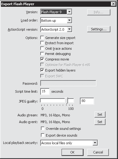 Здесь из раскрывающегося списка Version (Версия) нужно выбрать версию flash-проигрывателя, для которого будет создаваться ролик (чтобы точно узнать, какая версия установлена на вашем телефоне, обратитесь к документации), нажмите кнопку OK. Ролик готов. Теперь вы можете просмотреть, что получилось. Для этого запустите flash-анимацию. Ролик будет открыт в проигрывателе (рис. 6.18).