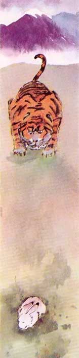 — Позвольте мне, господин тигр, взобраться к вам на спину. Я хочу посмотреть, не возвращается ли человек.