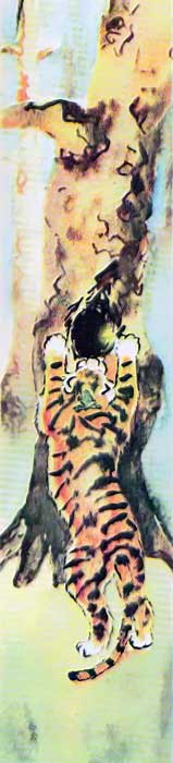 — Я попрошу вас, господин тигр, подняться на задние лапы, тогда я смогу увидеть самую дальнюю тропинку. А чтобы вам было легче стоять, — прислонитесь вот к этому дереву.