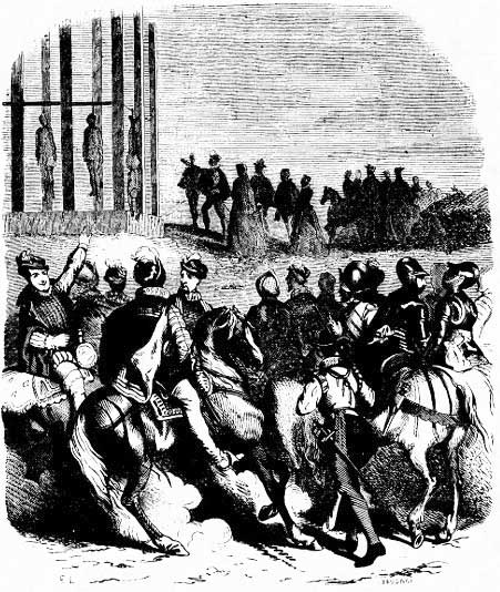 — Должно быть, гугеноту любопытно поглазеть на господина адмирала, висящего на железном крюке, не так ли, господин де Ла Моль? И ведь говорят, будто есть негодяи, которые клевещут на нас и утверждают, будто мы убивали даже гугенотиков-сосунков!