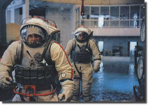 Они оказывают помощь тренируемым космонавтам при возникновении нештатных ситуаций при работе в скафандре.