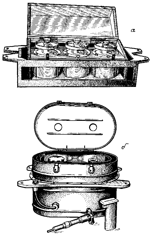 Рис. 6. Приборы для проведения технологических экспериментов на станции «Салют-5» (а — прибор «Кристалл»; б — прибор «Реакция»)