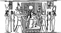 Вспомним, что поиски бессмертия, доступного лишь богам, сначала привели его на «место приземления» в Кедровых горах. Там Гильгамеша и его товарища Энкиду остановили робот-стражник и Небесный Бык. Затем Гильгамеш отправился к космопорту на Синайском полуострове. Подходы к нему охраняли устрашающего вида стражи: «Грозен их вид, их взоры – гибель, их мерцающий блеск повергает горы» (рис. 42). Однако Гильгамешу смертельное оружие не причинило вреда, и тогда один из стражей крикнул товарищу