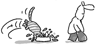 Многие века идея о том, чтобы задавать корм котам, казалась таким же бредом, как квадратура круга. То же самое относилось и к кормлению кур, если уж на то пошло. И коты, и птица прекрасно добывали себе пропитание сами, болтаясь по окрестностям. Все заботы при их содержании сводились к тому, чтобы время от времени убирать за ними и следить, чтобы у них не развелись паразиты. Собаки получали обед, кошки — объедки. Если повезет. Как дела обстоят сейчас — сами знаете.