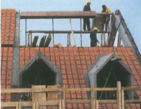После того как установлены опоры плит монолитной крыши, вы укладываете сборные блоки вместе с двумя помощниками и консультантом строительства от поставщика монолитной крыши. В течение нескольких часов крыша покрыта.