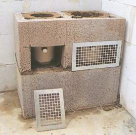 Строительство дымовой трубы продолжается: на следующем блоке-оболочке вычерчивается с помощью шаблона, входящего в строительный комплект, отверстие для дверцы, предназначенной для очистки дымохода.