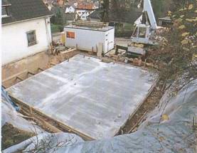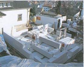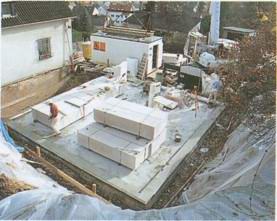 21 октября прибыл экскаватор для выемки земли. Укладка канализационных труб и бетонирование фундамента продолжалось до 30 октября. В ближайший после этого понедельник начались работы по возведению стен подвала, которые были уже закончены вечером во вторник. Недоверчиво наблюдали соседи за тем, что происходило у Эккерманов. Даже семья строителей была поражена, хотя ей было известно расписание работ. На третий день были уложены полуфабрикаты сборных блоков перекрытия подвала и сделана опалубка лестницы. Рано