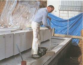 14.00: уже в первый день были также уложены на выравнивающем слое блоки внутренних стен.