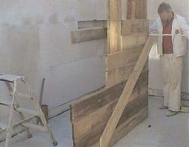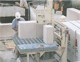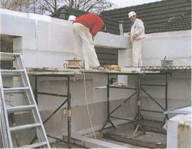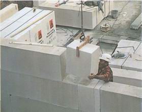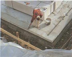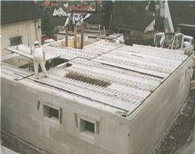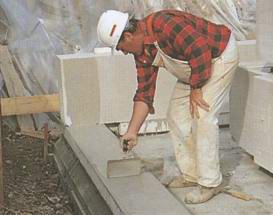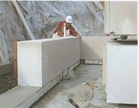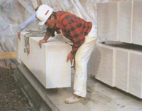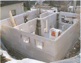 Крупные блоки из пористого бетона были поставлены из грузовика прямо на фундаментную плиту.