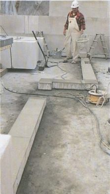 Пригоночные детали нарезаются большой ленточной пилой на месте.