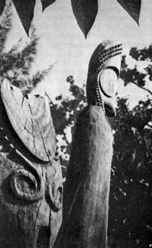 Я с любопытством рассматривал интерьер дома сходок: несколько масок, две земляные печи для выпечки лаплапаи небольшое пространство, по которому разрешается передвигаться женщинам.