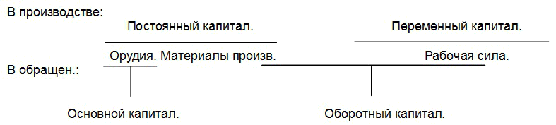 Следует избегать смешения оборотного капитала с переменным и основного — с постоянным. Одно разделение капитала на части делается с точки зрения предпринимателя, другое — с точки зрения работника. Переменный капитал — стоимость
