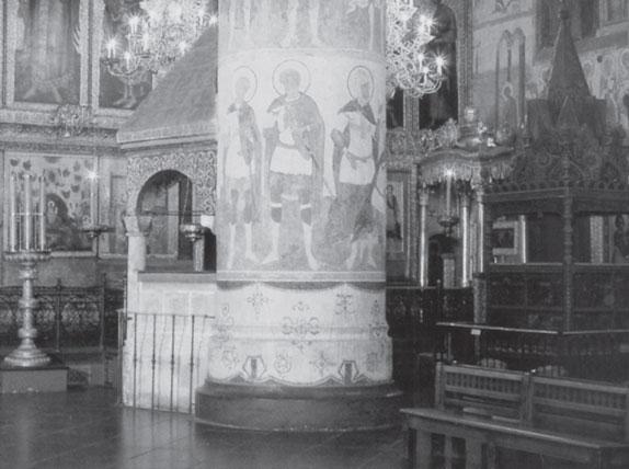 Рис. 1.25 Успенский Собор Московского Кремля. Его колонны украшены изображениями полотенца-рушника, опоясывающего колонны на уровне человеческого роста.