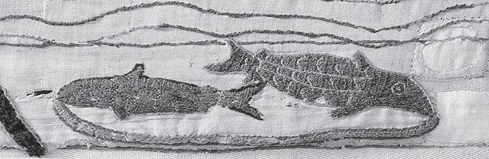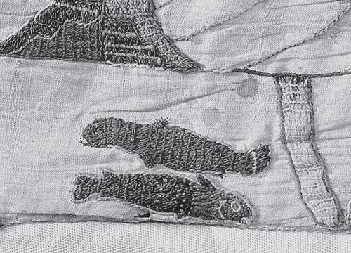 Рис. 1.52 Вторая пара рыб, изображенная на ковре из Байе, см. лист. 33. Но тут нет соединяющей их ленты, так что отсутствует характерный признак зодиакального созвездия Рыб. Взято из [138], лист 33.