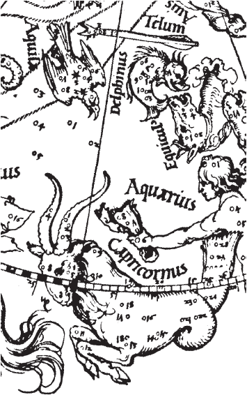 Рис. 1.58 Зодиакальное созвездие Козерога на звездной карте А. Дюрера. Прямо над Козерогом находится созвездие Орла. Взято из [21], с. 8, илл. 1.
