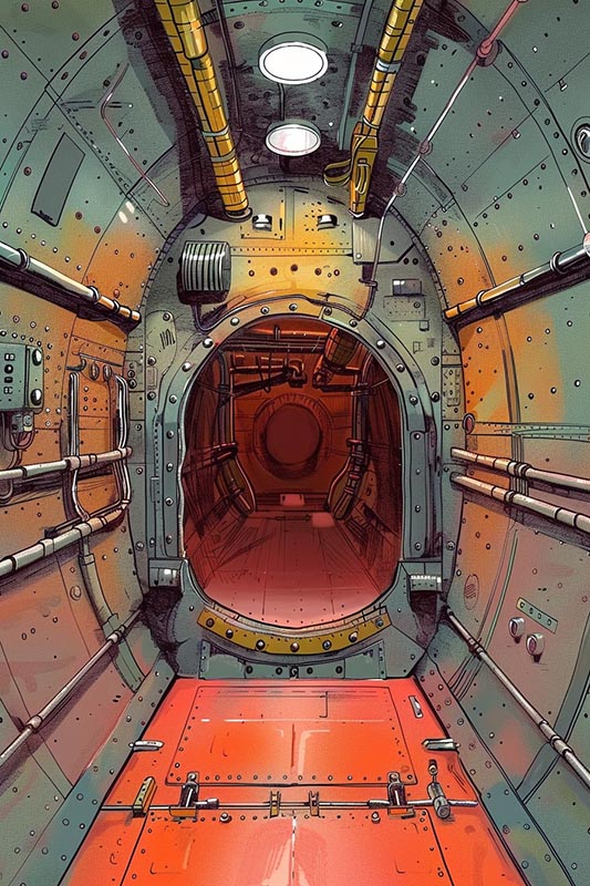 Надо признать – есть случаи, когда никакие приборы не нужны. И этот случай именно таков. Переделку стыковочного узла невозможно не заметить невооружённым взглядом, даже с моим не до конца восстановившимся зрением. Кабели, интерфейсы, логи… А переходной шлюз не хотите? Кустарный, уродливый, небезопасный даже на вид, но объективно существующий. Это определённо не галлюцинация – на такое вопиющее нарушение всех существующих технических регламентов у меня бы воображения не хватило. Как минимум, стало понятно, почему не работает главный лифт – из нижней части его шахты и запаркованной тут кабины сделали небольшую шлюзовую камеру. Слава утилитаризму – примерно половина деталей взаимозаменяема. Кабина лифта герметична, являясь одним из убежищ для членов экипажа при аварии, а закрепить её с соответствующим уплотнением стыков – дело несложное. В днище вварен люк, надо полагать, выходящий на внешний корпус. Чем здешний экипаж не устроили штатные шлюзовые камеры? Понятно, чем: ни одна из них не выходит на сторону буксировочного узла. Нечего там делать экипажу в полёте. Ему, так-то, вообще нечего делать снаружи, но скафандры есть и шлюзы есть. Мало ли, выбьет микрометеоритом датчик стыковочный, проще его заменить, чем корячиться без него. А тут, значит, кто-то неслабо заморочился, чтобы выходить в направлении баржи, зарезав себе, кстати, возможность пройти техническую инспекцию. Лишняя дырка в наружном корпусе, это, знаете ли, не унитаз засорился. Это дело практически подсудное. Ради чего? Вот в чём вопрос…