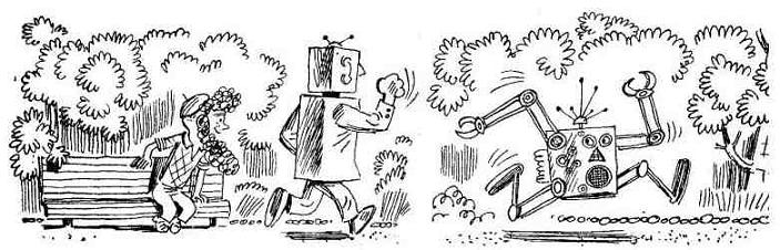 — Это очень хорошо! — обрадовался кибер, и внутри у него что-то защёлкало. Затем он поудобней развалился на скамейке и заявил: