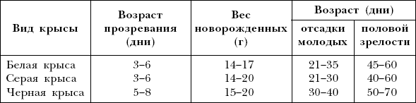 Как уже говорилось, крысы дают до 5–6 пометов в год. Вес новорожденного зверька достигает 3–6 г в зависимости от количества особей в помете. Детеныши крыс растут и развиваются несколько медленнее хомячков, однако они довольно подвижны еще до открытия глаз, что происходит на 14–17-й дни, а к 10-дневному возрасту у детенышей появляются нижние резцы. Полного развития молодые особи достигают через месяц,