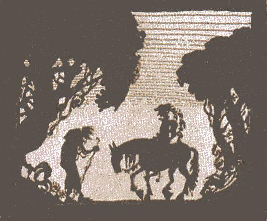 Фигуры китайского театра теней, например, вырезались из промасленной разноцветной бумаги. (Ее специально промасливали для того, чтобы силуэты-тени на экране были прозрачными и разноцветными.)