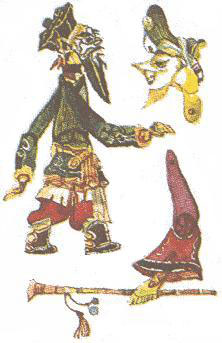 Шкуру долго выделывают в тонкую пластинку (1,5–3 мм) желтого цвета, больше напоминающую пергамент, а не кожу. Потом над этой пластинкой работает мастер-резчик. Эта профессия на Яве – одна из самых уважаемых. Как на Руси относились к иконописцам, так на Яве к мастерам-резчикам ваянгов (см. «Ваянг») – теневых кукол. Резчики вырезают силуэты и покрывают их ажурной резьбой. Потом живописцы раскрашивают их, пользуясь только пятью красками: белой, желтой, синей, красной и черной. Затем куклы собираются: к ним приделываются руки, ноги и головы. И, наконец, к кукле прикрепляются трости управления… Таких кукол для