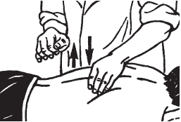 1. Применяют прерывистую вибрацию (рубление, доколачивание, похлопывание) на напряженных группах мышц, что вызывает болезненные ощущения у массируемого).