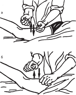 а – локтевым краем кисти; б – тыльной стороной согнутых пальцев