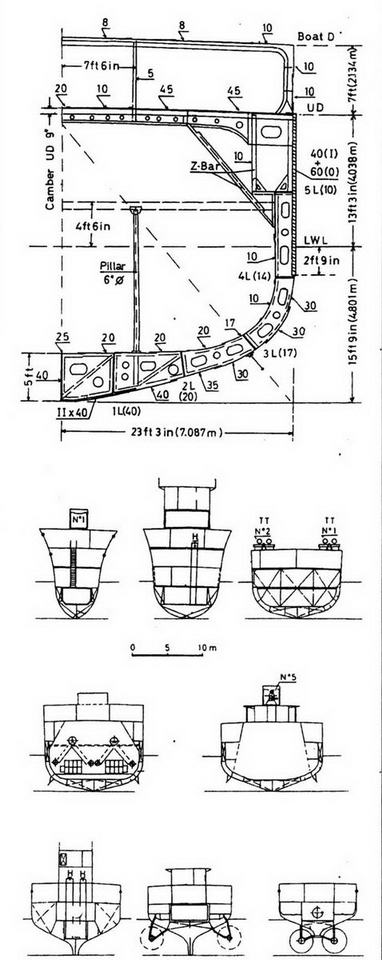 Легкие крейсера типа “Кума”. 1920 г. (Конструктивный мидель-шпангоут и поперечные сечения)