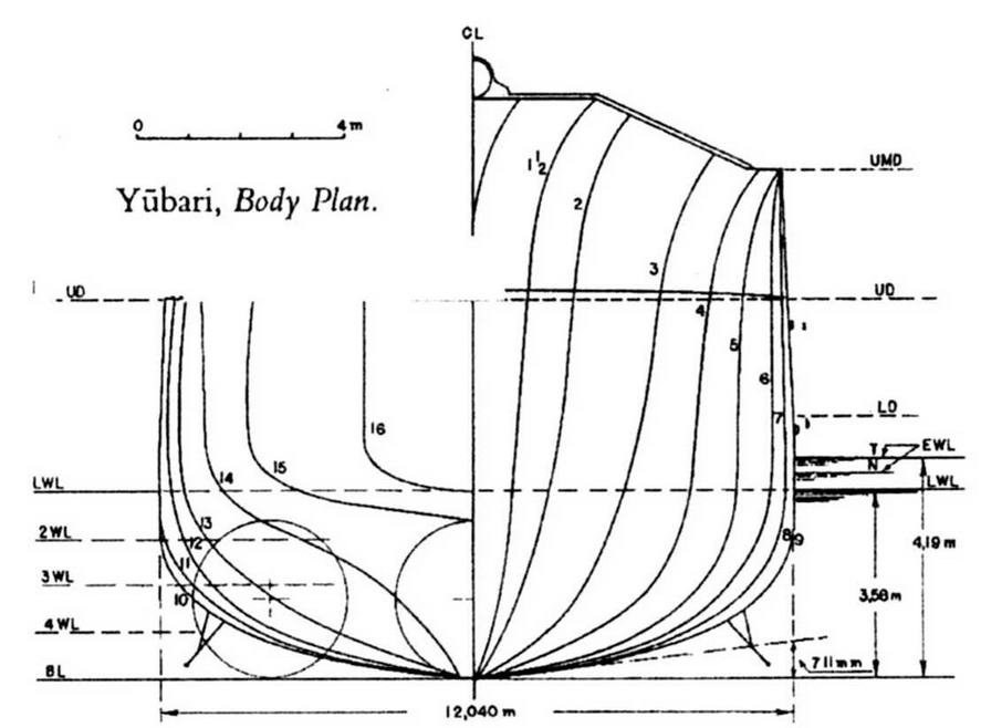 Легкий крейсер “Юбари” (Теоретический чертеж корпуса)