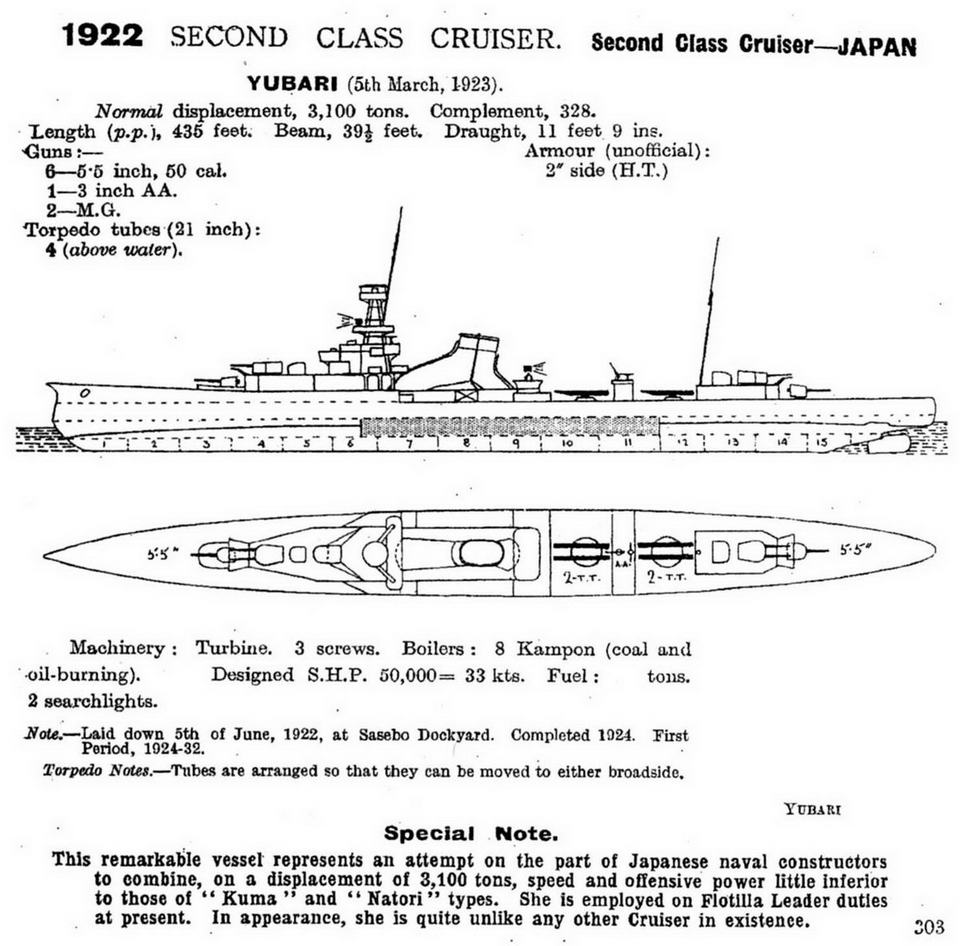 Легкий крейсер “Юбари”. (Сведения о корабле, опубликованные в английском справочнике "JANE’S FIGHTING SHIPS". 1939)