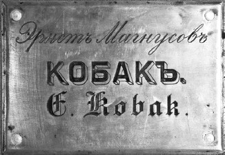 Генеральский дом стоит и по сей день. О нем я еще расскажу, а пока о нашем доме. Он был бревенчатый, рубленый (что выяснилось, когда его ломали), обшитый вагонкой, очень теплый. По фасаду, выходящему в сторону Институтского проспекта, было пять окон, справа – парадный вход и лестница на второй этаж. С противоположной стороны симметрично располагались черный ход и черная лестница на второй этаж. Резные входные двери были сверху застеклены. За ними шел небольшой коридор наподобие веранды. Направо – двухмаршевая лестница на 2-й этаж, налево – вход в нашу квартиру. На дверях металлическая табличка «Эрнстъ Магнусовъ КОБАКЪ», и еще Е. Kobak – готическим шрифтом. Табличка была снята в 1942 году, когда ломали дом. Она сохранилась.