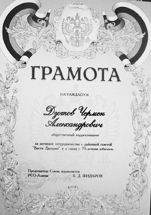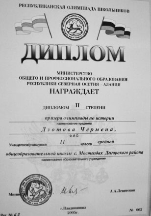 Спасибо моему дяде Адаму, который стал для меня примером. Первую книгу осознанно я прочитал с ним. Летом я поставил себе цель стать отличником. Пока ровесники бегали на улице и купались в речке, я сидел над книгами и переписывал их на три языка: русский, осетинский, английский. За лето исписал несколько тетрадей по 96 листов. По вечерам читал историю, по 30 страниц в день.