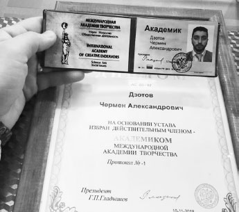 Стал Действительным академиком Международной академии творчества, 2018 год.