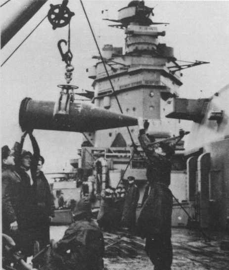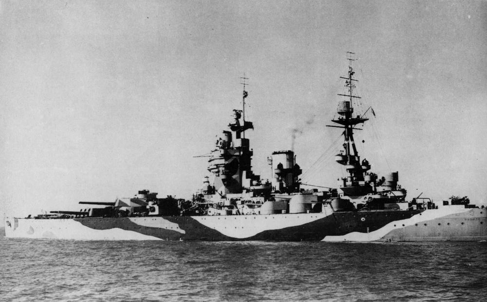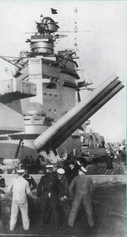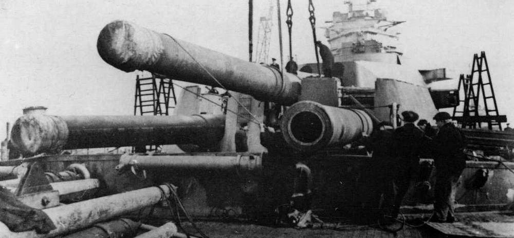 "Родней на разборке. С корабля снимают 406-мм орудия.