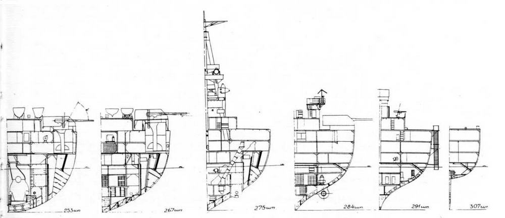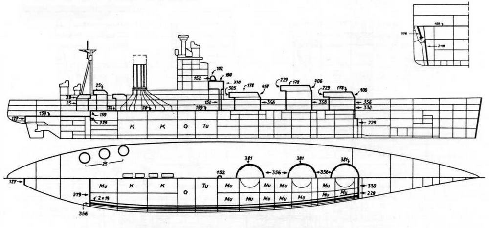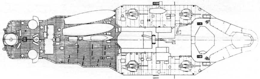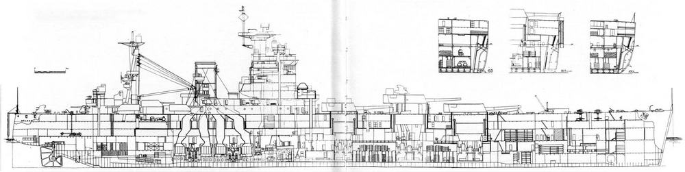 Имея высокий надводный борт, они могли вести высокоэффективный огонь практически при любых штормовых условиях. В этой связи необходимо отметить, что подобную схему размещения артиллерии главного калибра использовали в середине 30-х гг. французы, при постройке линейных крейсеров типа "Дюнкерк" и линейных кораблей типа "Ришелье". Характерно, что в последнем случае проектанты не были ограничены договорными нормами. Зато японцы, приступая к постройке 2-х своих тяжелых крейсеров "Тоне" и "Тикума" с 8 203-мм орудиями, сконцентрированными в носовой оконечности корабля, как и англичане, стремились в строго определенное водоизмещение "втиснуть" мощное артиллерийское вооружение при довольно сильном бронировании. .