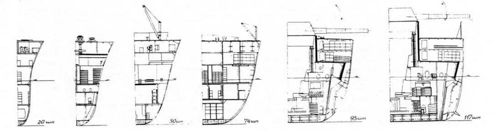 Помимо общеконструктивных мероприятий, проблема уменьшения веса решалась путем тщательного проектирования буквально всех узлов и деталей корпуса и механизмов. Для изготовления шкафов, ящиков и кранцев широко использовали алюминиевые сплавы. Выгородки кают и мебель изготовляли не из стали, а
