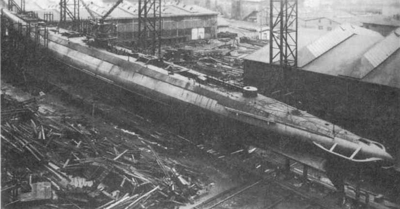 Обобщив опыт постройки и эксплуатации подводных лодок большого водоизмещения с усиленным артиллерийским вооружением, в Великобритании 16 июня 1923 г. спустили на воду подводный крейсер "Х-1". По сути дела это была доведенная до совершенства германская идея подводного рейдера для действий на удаленных океанских коммуникациях потенциальных противников. Правда, у англичан был и свой взгляд на боевое применение подобных кораблей. К концу Первой мировой войны на вооружение флота стали поступать первые приборы для обнаружения подводных лодок в подводном положении и средства их поражения, в частности, глубинные бомбы. Носителями противолодочного оружия являлись надводные корабли класса корвет — эсминец, то есть имевшие сравнительно слабое артиллерийское вооружение. Поэтому англичане предполагали использовать подводные крейсера совместно с торпедными подводными лодками для того, чтобы первые могли связать артиллерийским боем противолодочные корабли, а вторые в это время атаковать главные силы противника или транспорты. Поскольку даже случайное попадание снаряда в корпус подводной лодки всегда будет иметь для нее более тяжкие последствия, чем для надводного корабля, то "Х-1" должна была вести и артиллерийский бой нс в надводном положении, а в позиционном, когда на поверхности находилась бы лишь надстройка с орудиями, рубкой и расположенным на ней дальномером, а прочный корпус прикрывался "броней" из воды. В этом случае подлодка представляла собой чрезвычайно малую цель, и хотя попадание снаряда в надстройку могло нанести ей ущерб, но не лишало ее основного качества — способности погружаться. В отличие от германских подводных крейсеров главный калибр "Х-Г состоял из двух спаренных 132-мм орудий в башенноподобных установках. Однако это были нс артиллерийские башни в полном смысле этого слова Дело в том, что сделать эти артиллерийские установки совершенно герметичными технически очень сложно, а если допустить их негсрметичность и они будут затапливаться при погружении, то возникает проблема их быстрого синхронного заполнения водой в течение нескольких десятков секунд. В противном случае медленное и неравномерное заполнение артиллерийских башен водой сильно повлияло бы на время погружения подводной лодки и могло привести к непредсказуемым дифферентам. По этой причине решили орудия прикрыть обыкновенными щитами. "Х-1" вошла в состав флота в 1926 г. и уже через несколько лет пошла на слом. Столь короткая жизнь этого крейсера объяснялась, как рядом конструктивных недостатков, так и некоторыми просчетами в вопросах предполагаемого его боевого применения, на чем мы остановимся несколько ниже.
