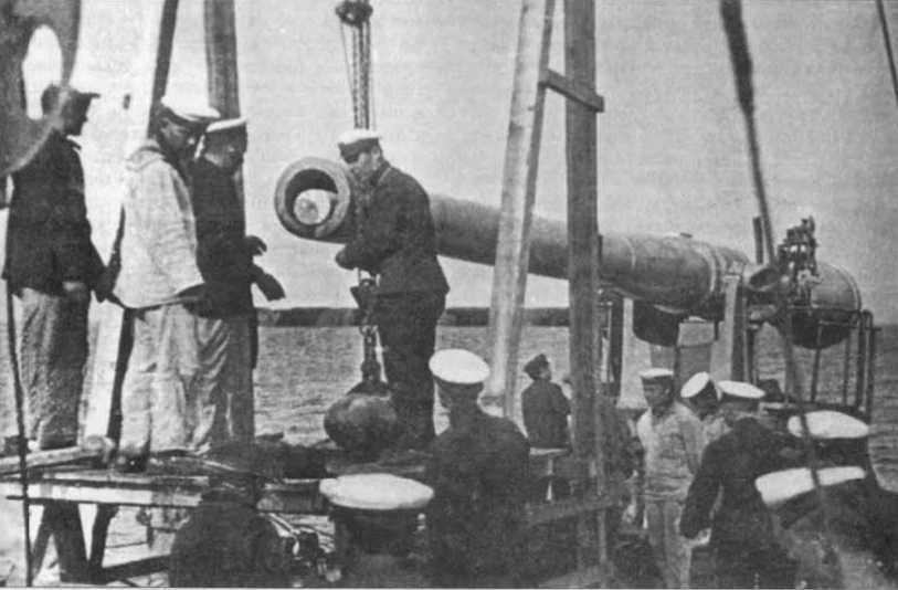Испытания 305-мм ДРП Л. И. Курчевского на эсминце "Энгельс".