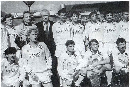 «Динамо» — обладатель Кубка СССР 1990 года (со счетом 6:1 разгромлен «Локомотив»). Стоят (слева направо):