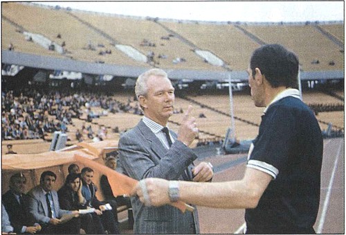 И. Турчин, самый титулованный тренер в истории мирового спорта, поздравляет В. Лобановского с 50-летним юбилеем