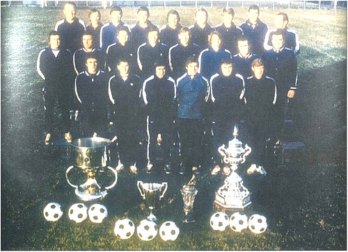 О. Лужный, В. Чанов, В. Лобановский, Цвейба, О. Саленко, Веремеев, А. Демьяненко, А. Баль, Г. Литовченко. Сидят: С. Ковалец, А. Михайличенко, В. Рац, Шматоваленко, О. Протасов