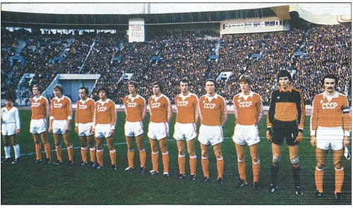 Стоят (слева направо): В. Евсеев, А. Михайличенко, В. Рац, А. Пузач, О. Блохин, О. Кузнецов, В. Веремеев, М. Михайлов, В. Лобановский, П. Яковенко, Е. Евтушенко. Сидят: И. Беланов, В. Малюта, В. Евлантьев, И. Яремчук, А. Заваров, А. Баль, С. Балтача, В. Бессонов, А. Демьяненко