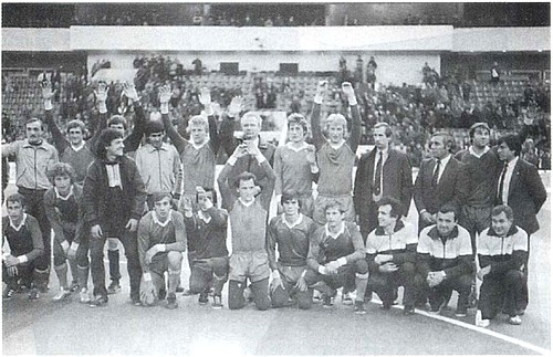 Стоят (слева направо): А. Пузач, Я. Думанский, А. Сорокалет, В. Лозинский, А. Баль, В. Хлус, В. Чанов, С. Журавлев, В. Веремеев, В. Лобановский, М. Коман, Г. Спектор. Сидят: В. Малюта (врач), В. Евлантьев (массажист), А. Демьяненко, В. Евтушенко, А. Бойко, С. Балтача, О. Блохин, Л. Буряк